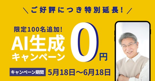 5月10日までとしていたリリースキャンペーン期間延長し、6月18日まで先着100名までインタビュー撮影費とAI生成費が無料となるキャンペーンを実施いたします。