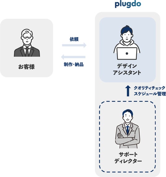 「plugdo」(プラグド)とは初期費用0円・月々3.6万~定額で優秀なデザインアシスタントがお客様のデザイン作業を代行するサービスでございます。