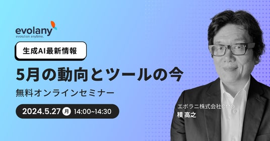 【エボラニ株式会社】2024/5/27(月)14:00~14:30 【生成AI最新情報】5月の動向とツールの今
