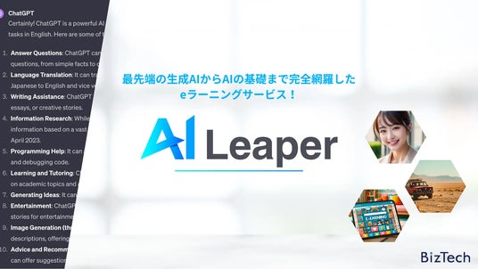 「テクノロジーによるビジネス価値の継続的な創出」を企業理念にAIシステム企画、開発サービスを提供する株式会社XAI(所在地:東京都渋谷区、代表取締役:八木谷 佑太、読み方:ザイ)は、AI開発のコンシェルジュサービス「AI Market」やプロンプトマーケットプレイス「Prompt Plus」を手掛けるBizTech株式会社(本社:東京都豊島区 代表取締役: 森下佳宏)と共同で、最先端の生成AIからAIの基礎まで完全網羅した法人向けeラーニングサービス「AI Leaper」の提供を開始しました。