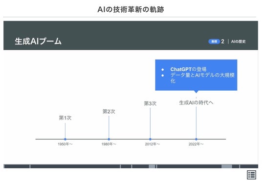 - AIの基礎からChatGPTや画像生成等の生成AIもカバーしたコンテンツ!
