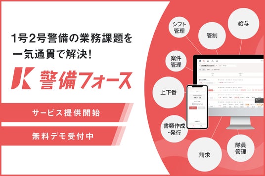 株式会社メディカルフォース(本社:東京都品川区、代表取締役:大嶋 翼)は、1号・2号警備業の基幹業務である管制・上下番・給与計算・請求書発行の一元管理システム「警備フォース」のβ版をリリースいたしました。