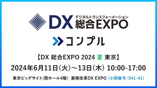 6月11日~13日に東京ビッグサイトで開催される「DX 総合EXPO 2024 夏 東京」に出展することにいたしました。本イベントでは、オンラインで事前にコンプルの製品情報の収集が可能なほか、来場時には製品を体験することが可能です。
