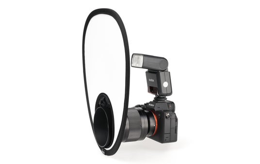 カメラのレンズフードにワンタッチ装着。ストロボの光を拡散する便利グッズ!<内蔵ストロボ・クリップオンストロボ用>
