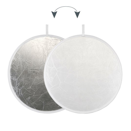 銀色と白色のリバーシブル反射板、携帯に便利な31cmタイプをリニューアル「Rレフ S/W(銀/白) KRR-S/W31-II」