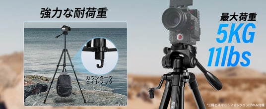 【安定性と耐久性】 頑丈なカメラ三脚は、優れた安定性と耐久性を備え、さまざまな地形に適しており、長持ちするように作られています。この三脚により、揺れを心配することなく、撮影した画像を正確に揃えることができます。滑り止めゴム足は、しっかりとしたグリップと強力な摩擦を提供します。中央の柱が厚くなったため、三脚はねじれや揺れに強くなっています。さらに、三脚にはカウンターウェイトフックが付いており、より安定したサポートを提供します。