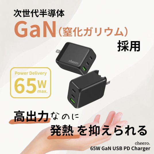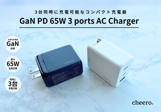 cheero(会社名:ティ・アール・エイ株式会社)は2024年5月28日(火)正午より、「cheero 65W GaN 3 ports USB PD Charger」の新色ブラックを販売開始します。