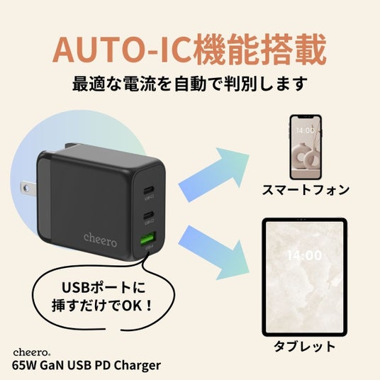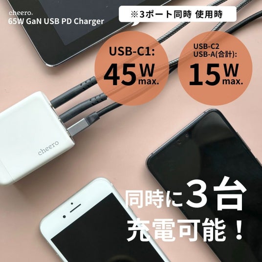 製品名:cheero 65W GaN 3 ports USB PD Charger