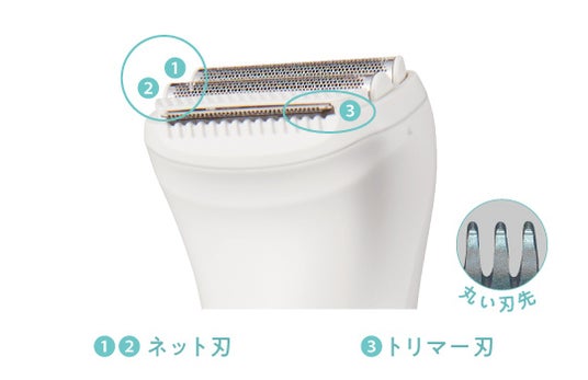 内刃と外刃の構造で、肌に直接可動刃が当たらないネット刃と、刃先が丸く肌に刺さりにくいことでヒリつきを軽減(※1)するトリマー刃を採用しました。