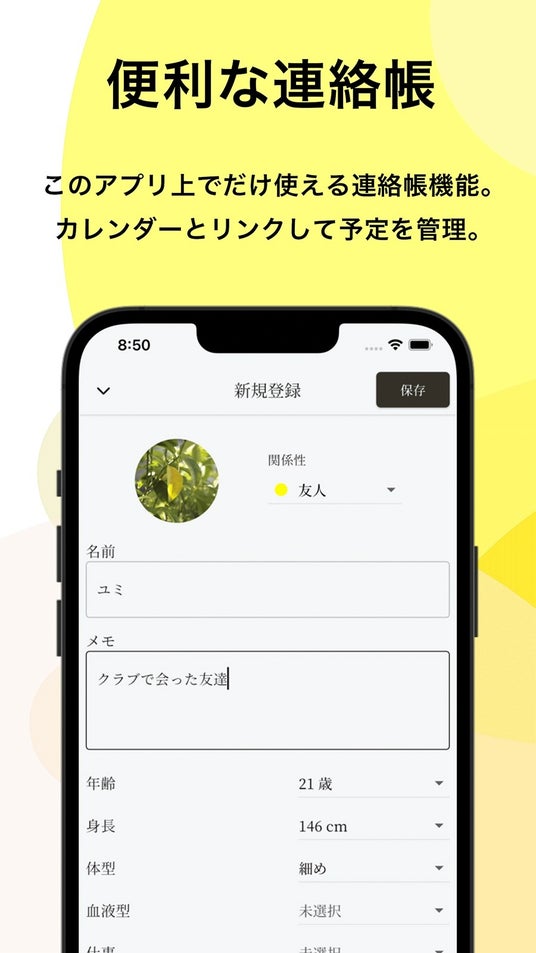 シークレットカレンダーは、友人や恋人など「人」と会う予定管理に使いやすい設計になっています。当アプリ独自の連絡帳にプロフィールを登録できるため、人脈整理にもご活用いただけます。