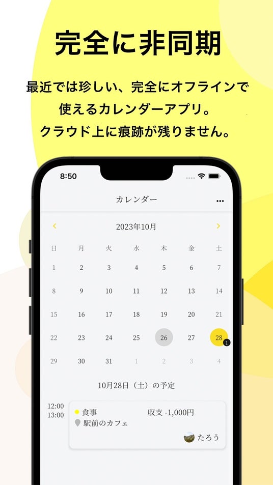データはローカル保存でセキュリティの心配不要。人と会う予定の管理に使いやすいシンプルなカレンダーアプリ