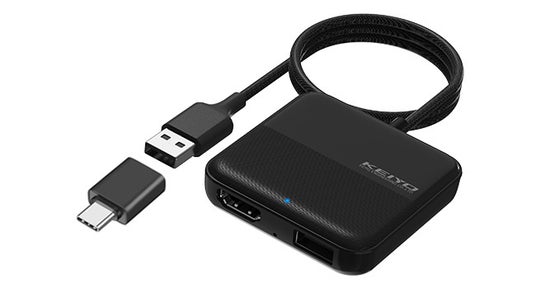 データ通信用USBポートに繋げてHDMI出力機器を接続するだけ