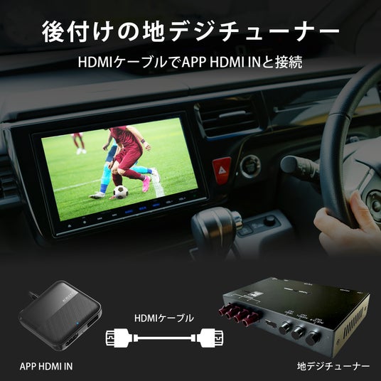 車にHDMI入力が無くても、CarPlay対応ディスプレイオーディオに有線接続でHDMI出力の地デジチューナー/TV Stick/ゲーム機器が楽しめる「APP HDMI IN」5月28日発売