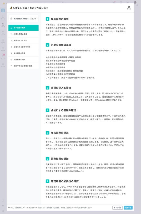 (右)GPT-4oを搭載したAIマニュアル作成機能で生成した業務マニュアル