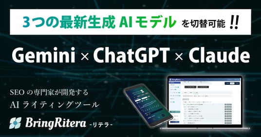 ChatGPT、Gemini、Claudeの各最新モデルを切替えながら利用可能に!SEOに強いAIライティングツール「BringRitera(リテラ)」