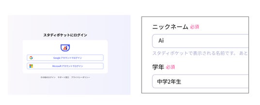 スタディポケットは、生徒はニックネームのみで利用でき、学校内ですでに教育目的で利用されている GoogleまたはMicrosoftアカウントのシングルサインオンが利用できます。これらのシングルサインオンで用いられているメールアドレス宛に、システムや運営からメールが送られることはありません。また、生徒の個人情報は第三者提供されることはありません。