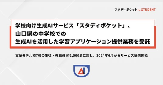学校向け生成AIサービス「スタディポケット」、山口県の中学校において、生成AIを活用した学習アプリケーション提供業務を受託