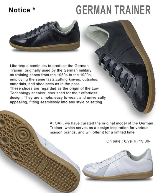 この度、「OAF(オフ)」にて 「GERMAN TRAINER(ジャーマントレーナー)」Original modelのスニーカーを2024年6月7日(金)19:00よりオフィシャルオンラインストアで販売を開始いたします。