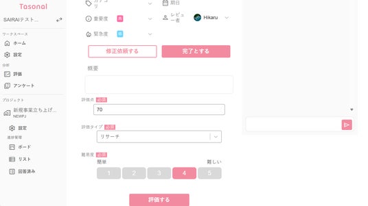 HR領域の支援を行う株式会社SAIRAI(所在地:東京都新宿区、代表取締役:平井瑞樹・高木光、以下「SAIRAI」)は、タスク管理ツール「Tasonal」のβ版をリリースしました。「Tasonal」では、タスク管理ツール上で評価やエンゲージメントを半自動的に収集し、それぞれのメンバーの能力や強み、リアルタイムのエンゲージメント変化を可視化することができます。