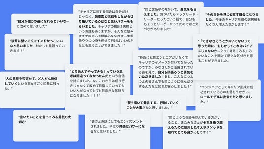 イベントやコミュニティ活動を通してたくさんの女性エンジニアから応援のメッセージや勇気づけられたというようなメッセージをいただいています。