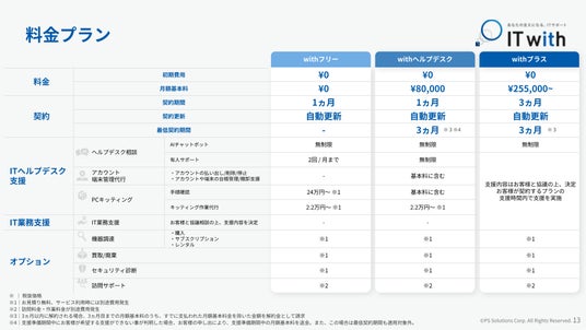 ・withプラスプラン(月額有料):情報システム部門丸ごとから、作業代行やドキュメント整備などの一部の業務までお客様のご要望に合わせてIT運用のプロに作業代行を依頼できます。