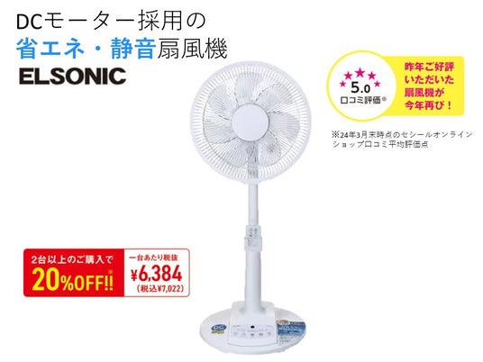 株式会社セシール(本社:東京都新宿)は『省エネ・静音DCモーター扇風機』を5月1日より販売開始しました。エアコンだと体が冷えすぎてしまう方や電気代を節約したい方にピッタリの商品です。