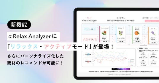 独自のBCI(Brain Computer Interface)を開発するブレインテックスタートアップである株式会社CyberneX(本社:東京都大田区、代表取締役:馬場基文)は脳情報を活用したリラックス度の可視化・比較サービスであるα Relax Analyzerに「リラックス・アクティブモード」を追加し、さらにAIを活用したレコメンド機能であるBrain Insight AIをアクティブ対応にすることでよりパーソナライズ化したレコメンドが可能になったことを発表いたします。これらのアップデートにより、ユーザーは体験した商材がリラックス状態を促進するものなのか、アクティブ状態を引き出すものなのかをより詳細に把握し、自分にとって最適な商品を見つけ、より自分に合ったライフスタイルを選択することを可能にします。