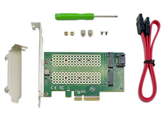 『M.2NVST-PCIE』は、M.2 NVMe SSDをPCI Express x4に、M.2 SATA SSDをSATAポートに変換する変換ボードです。