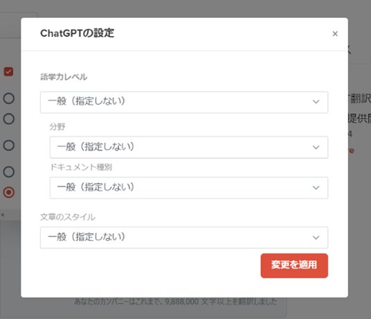 ユーザーは、ChatGPTの設定画面からプロンプトを指定することで、翻訳したい文書や業種に応じて細かな訳し分けをすることが可能です。これにより、ビジネスシーンで発生するさまざまな翻訳ニーズに対応できるようになりました。