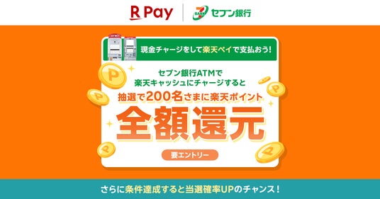 「楽天ペイ」、「セブン銀行ATMでチャージして全額還元のチャンス!」キャンペーンを実施