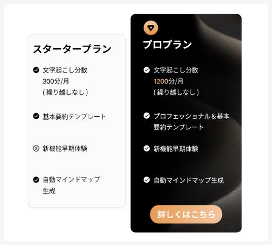 文字起こしや要約ができるAIメンバーシッププランにおいて、スタータープランとプロプラン2つのプランに大幅な制度更新が適用されました。