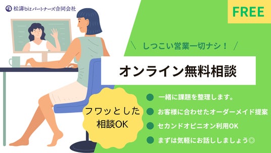 当社ホームページの「無料オンライン相談お申し込みフォーム」からのお問い合わせ限定で1時間相談無料。