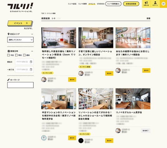 リノベーション会社を探すポータルサイト「フルリノ!」5月31日よりイベントの検索予約機能を追加