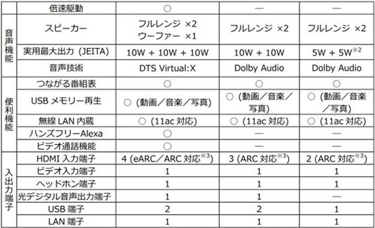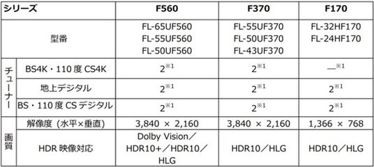 ※1 1つは視聴専用、残りは録画専用のチューナーとなります。 ※2 FL-24HF170 は 3W + 3W ※3 HDMI1 のみ対応