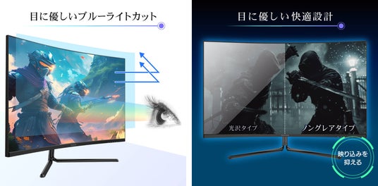 本製品はゲームの美麗なグラフィックを楽しむのに十分な画質や解像度、表示色を備えています。ブルーライトカットや反射・映り込みの少ないノングレア(非光沢)方式など、目に負担をかけずにご使用いただける設計です。