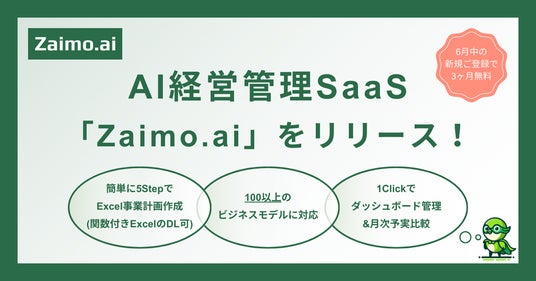 「経営を自由で創造的に。」をミッションに掲げるZaimo株式会社(代表:古城巧、所在地:東京都渋谷区)は、主にスタートアップのCFOや財務担当者、大企業の新規事業担当者向けに『誰でも簡単にExcel事業計画を作成し、予実管理体制を構築できる』AI経営管理SaaS「Zaimo.ai」を正式に提供開始いたします。