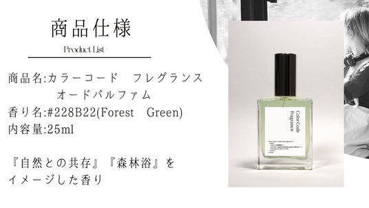 現代人の休息に焦点をあてた香水×プログラミング「ColorCode fragrance(カラーコード フレグランス)」が誕生!森林の香り#228B22が6月下旬よりMakuakeにて先行販売予定!