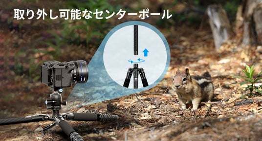 【マルチアングル撮影】取り外し可能なセンターポール機能により、極端な低角度撮影やマクロ撮影を可能にします。センターポールを三脚に取り付けた後、コラムロックを締めてコラムを調整し、作業高さを調整します。