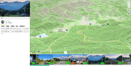 季節を反映した位置情報付き写真の表示、絶景スポットなど