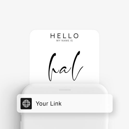 THE NAMETAG(ザ・ネームタグ)は、スマートフォンをかざすと設定したリンク先へアクセスできるネームタグステッカー。