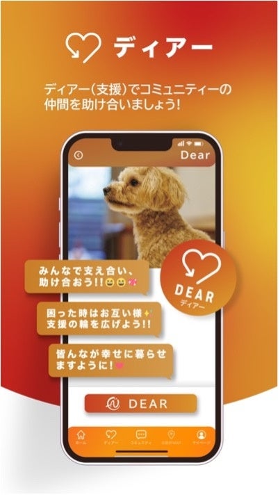 愛犬と家族が幸せに暮らすため、愛犬家同士が助け合い、信頼関係を築きながら情報や経験を共有するコミュニティを創造することを目的としたアプリです。お気に入りのコミュニティに参加して、パートナー(ユーザー)たちと交流を深めることができます。日々アプリの改善を重ね、より良いアプリにしてまいります。