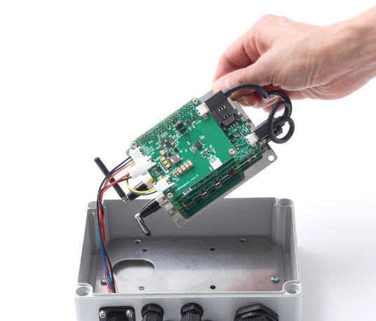 「Pi-field」は、電源やネットワークがない屋外でも「ラズベリーパイ」を使用した環境モニタリングを実現する、当社開発の屋外稼働キットです。4G通信モジュール、太陽光パネル等の部材を防水ボックスに配置し、間欠動作を採用することでシステム全体の小型・軽量化を実現しており、2017年2月の出荷以来、自治体での河川監視など、多くの稼働実績を有しています。