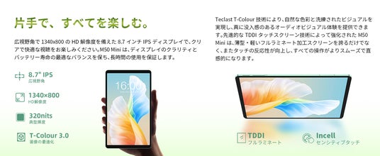 【新品登場】Teclast小型タブレット、8.7インチ「M50 Mini」発売!Android 14システム搭載、コスパ高いで持ち運びも便利です。