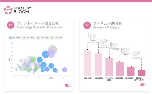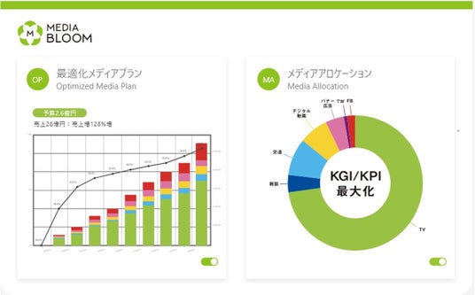 STRATEGY BLOOMで策定された戦略を当社グループが展開する、広告メディアビジネスの次世代型モデルAaaSにシームレスに連携。高度で独自性のあるアルゴリズムとデータにより、デジタル×マスメディアを横断・統合し、メディアPDCAを通じて投資効果を最大化するモジュール。メディアプランやメディアアロケーション、メディア効果のモニタリングなど最適なPDCAを支援するサービスを提供。