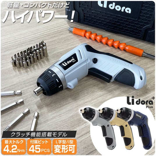 トルク7段階調節 電動ドライバー 47点セット充電式・コードレスでスッキリ。
