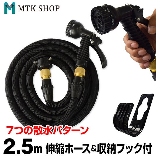 伸縮ホース 3倍に伸びる 約2.5m→7.5m蛇口をひねって水を出すと、水圧で約3倍に伸びます。
