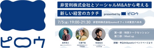 「非営利株式会社とソーシャルM&Aから考える新しい経営のカタチ」開催 7月5日(金) 19:00~ @非営利株式会社eumoオフィス(https://pillowlaunch.peatix.com)