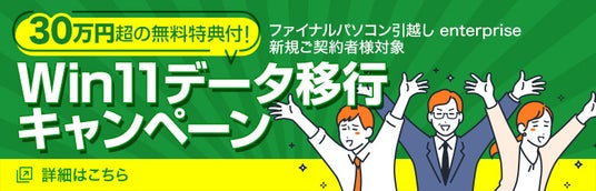 キャンペーン期間中に「ファイナルパソコン引越し enterprise」のライセンスを100本以上、新規契約の法人様に30万円相当の無料特典を差し上げます。