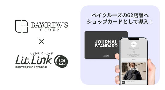コミュニケーションテック事業の運営をするTieUps株式会社(本社:東京都渋谷区、代表取締役:小原 史啓)が提供するデジタル名刺「リットリンク∞カード」を株式会社ベイクルーズが運営する「JOURNAL STANDARD」「JOURNAL STANDARD relume」など62店舗でショップカードとして導入を開始します。
