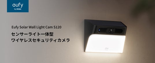 屋外用センサーライト一体型のセキュリティカメラ「Eufy Solar Wall Light Cam S120」を2024年6月4日(火)よりAnker Japan 公式オンラインストア等にて販売開始。スタイリッシュなデザインが特徴のEufyのセキュリティカメラ初のセンサーライト一体型モデルで、昼夜通して家族の安全を見守ることができる製品です。